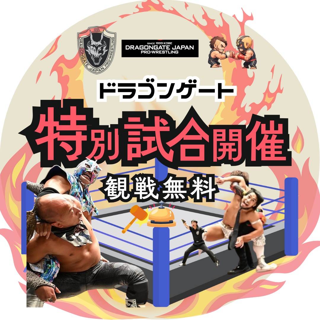 地元神戸のプロレス団体、ドラゴンゲートの観戦無料の試合を会場中央で行います。