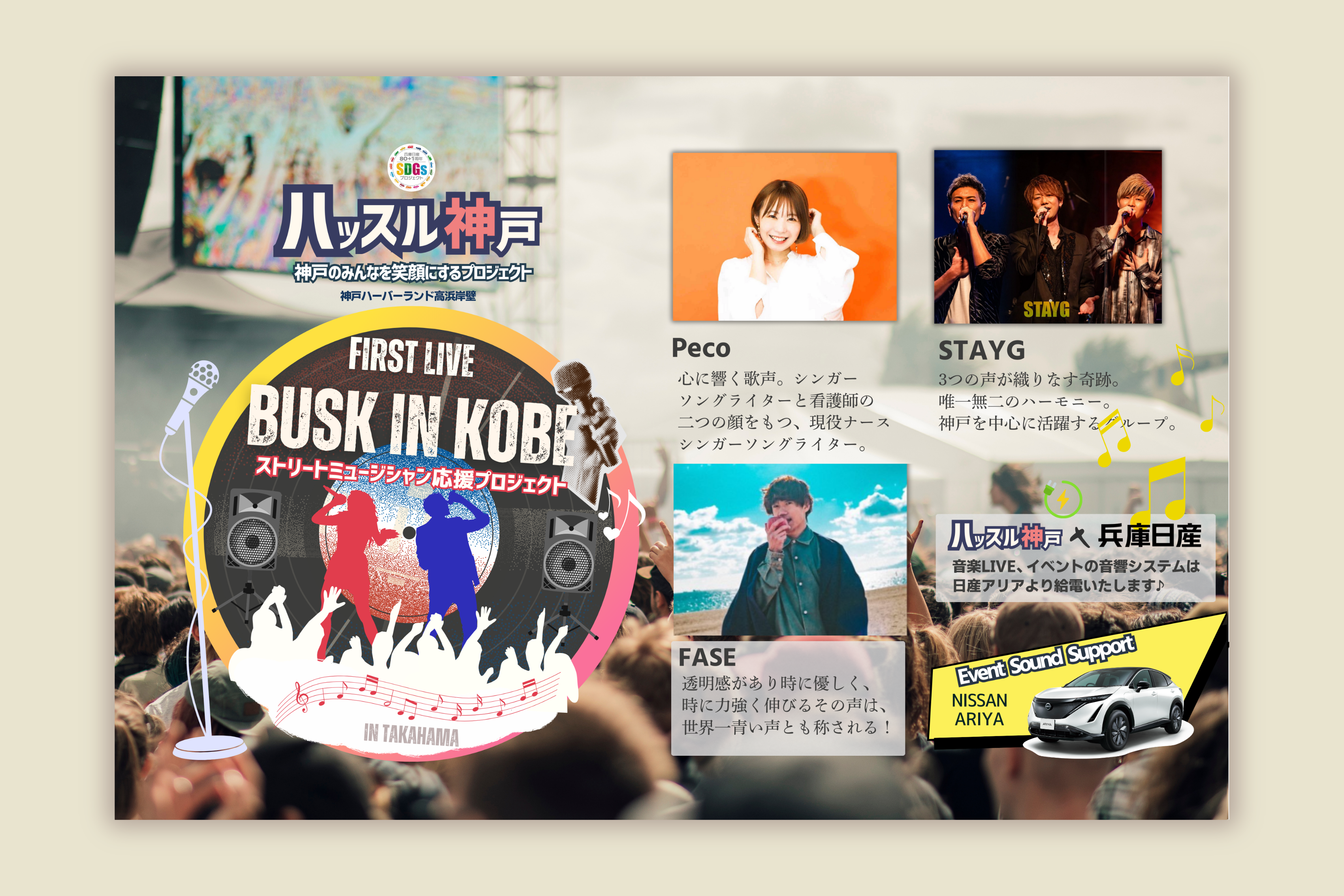 音楽LIVEを通じて多くの方が参加できるイベントを目的としており、